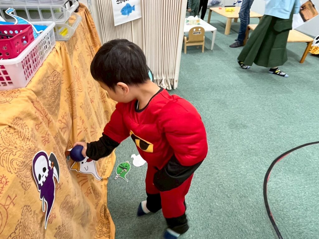 マッチングではお母さんやお父さんと一緒にお題のイラストを見つけ、全てのイラストを見つけた際には「あったよ〜!」とまじょこさんに笑顔いっぱい渡しに行っていました!