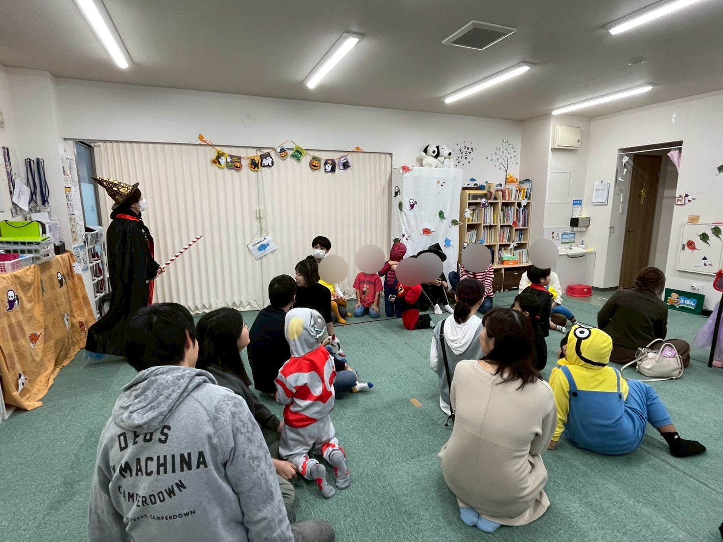 前日のレクリエーションの練習では「こわい」と涙してしまうこともありましたが、当日にはお母さんお父さんがいたことの安心感もあってか表情良く参加してくれていました!